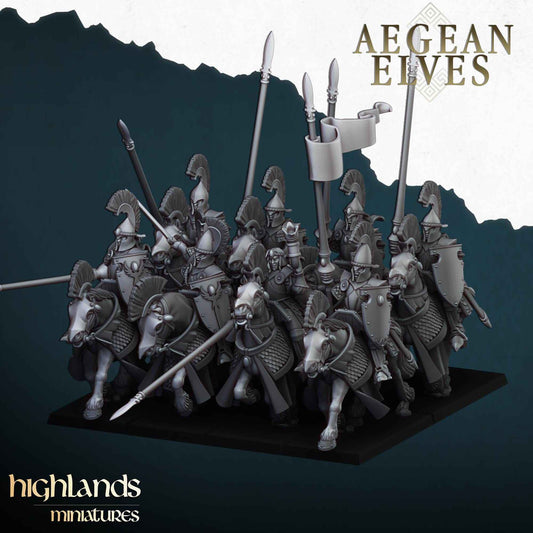 Aegean Elf Mounted Lances | Aegean Elves | Highland Miniatures | 32mm Scale Resin Tabletop RPG Figures for Roleplaying and Wargaming