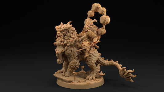 Komainu Mounted Samurai Celestial | Dragon Trappers Lodge | Chosen Of The Kami | 32mm Scale Resin Printed Tabletop RPG Figure For DND